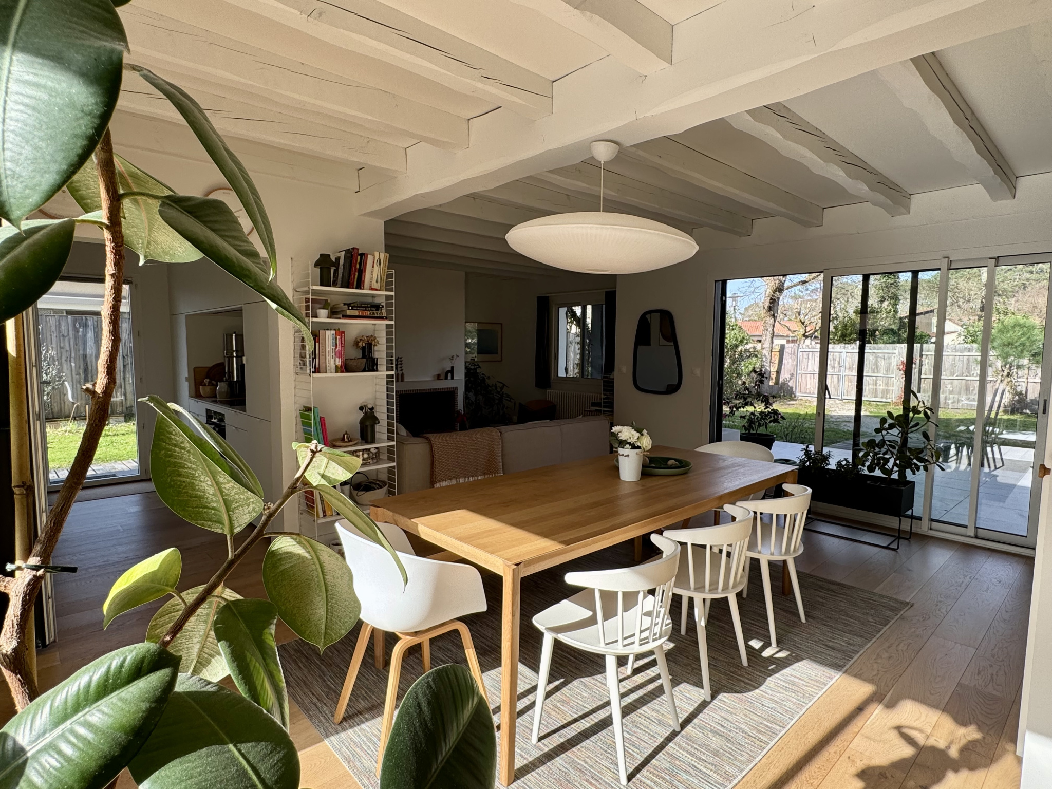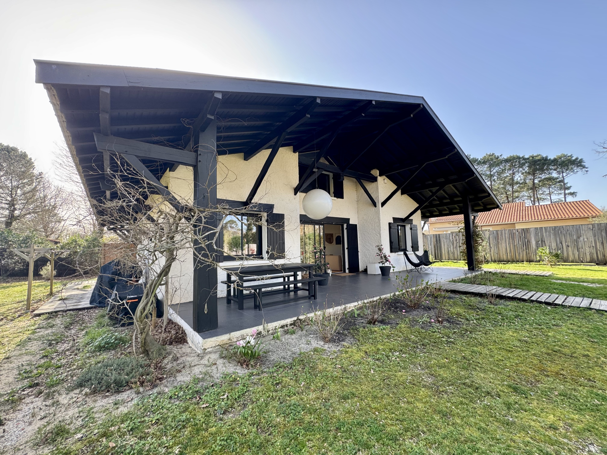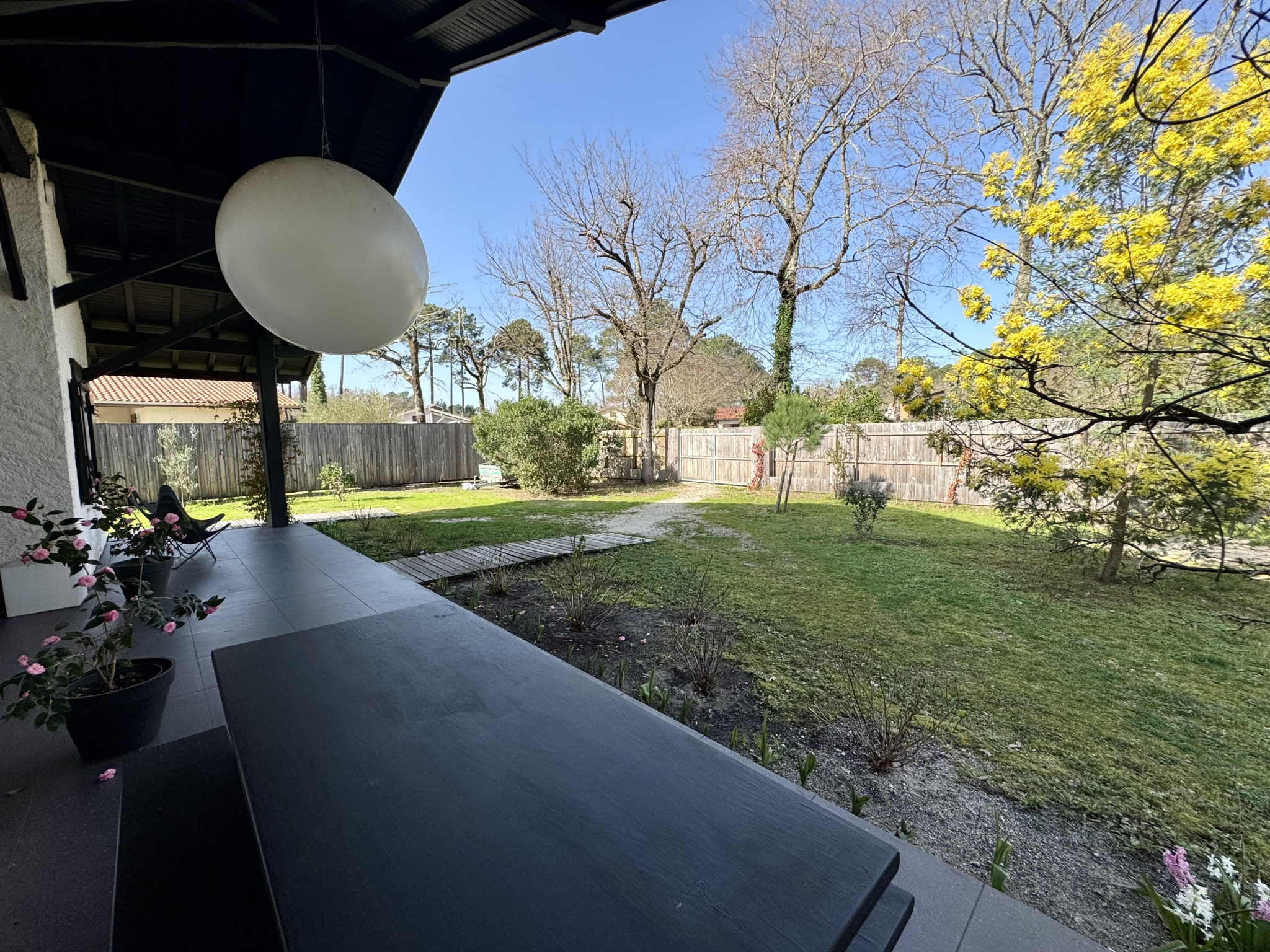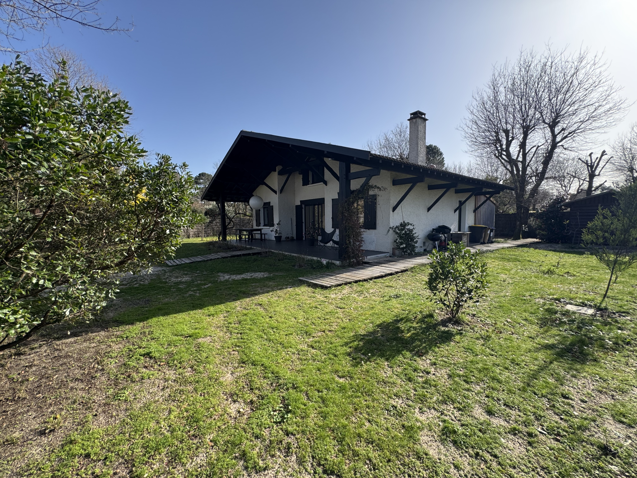 En exclusivité, très belle maison Landaise de 130 m² environ, entièrement rénovée en 2022, sur 2 niveaux avec un jardin arboré de 963 m², située dans un quartier très calme de Lège à proximité du Canal des étangs.