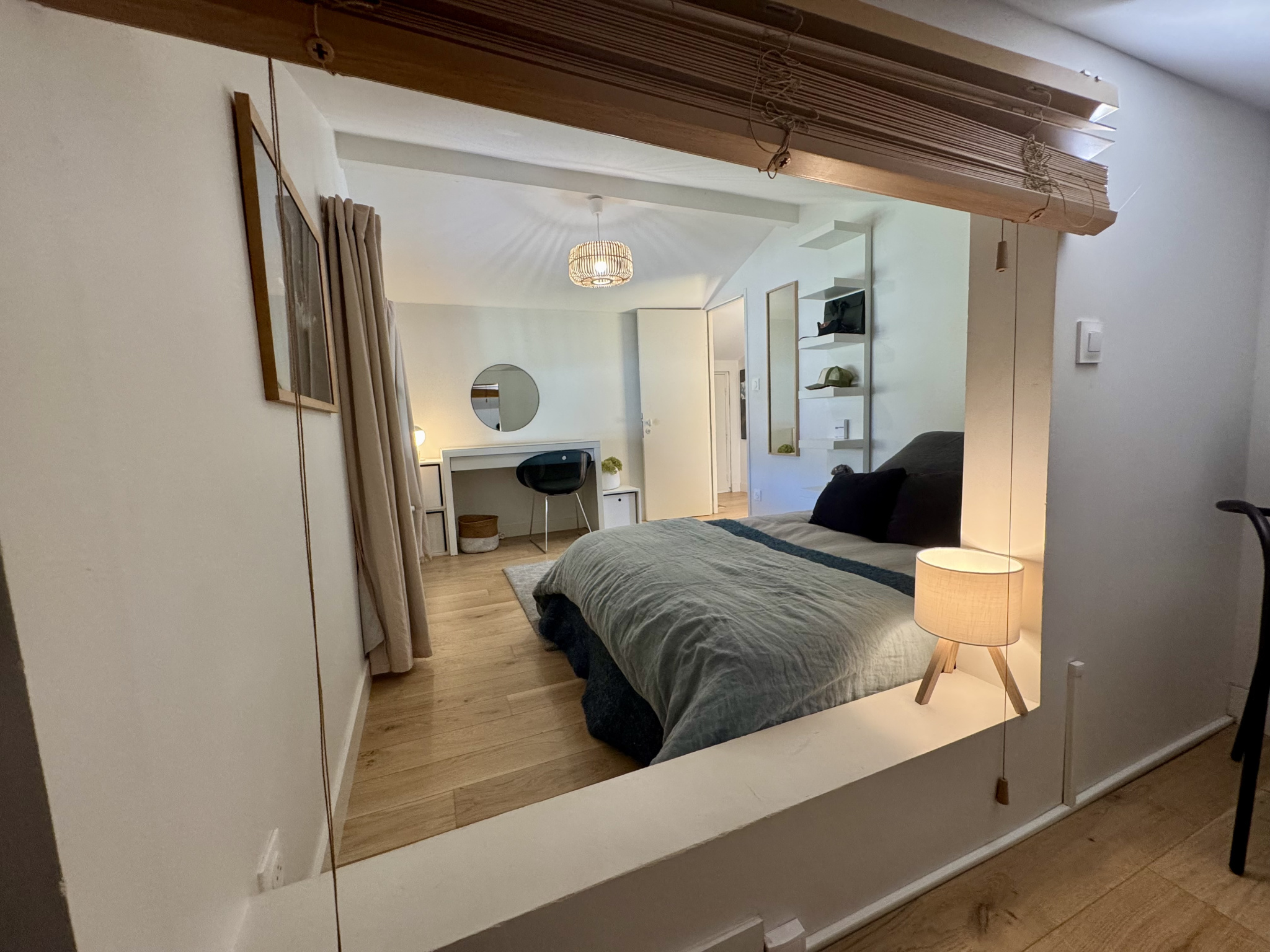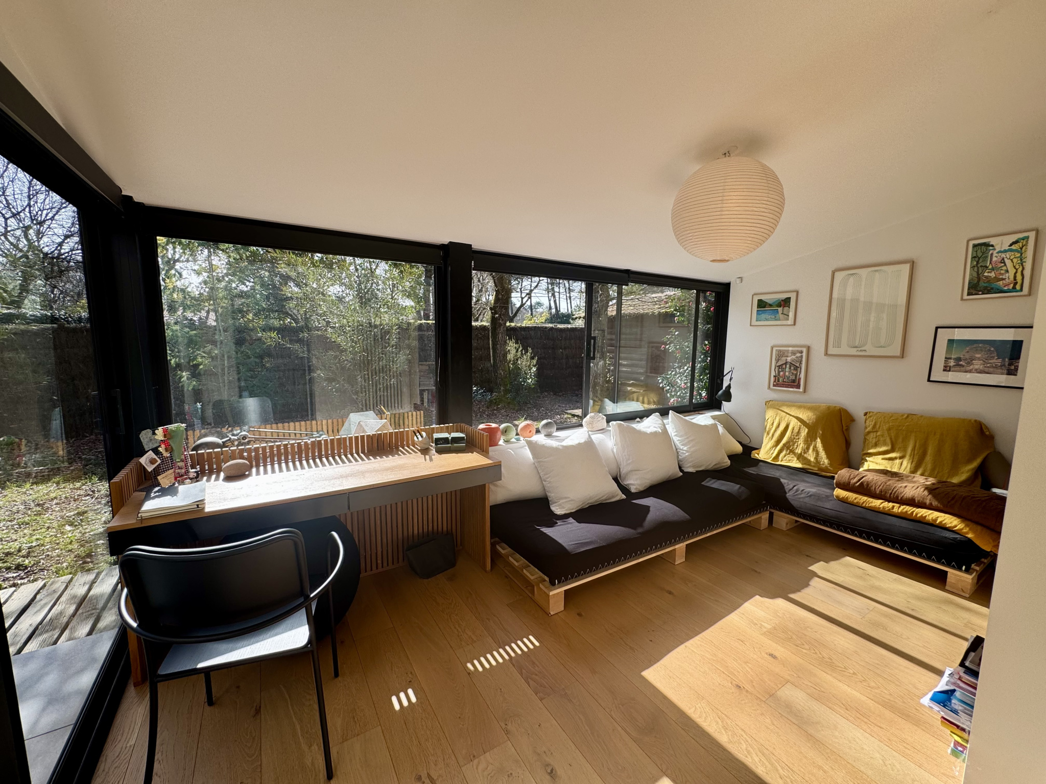 La maison se compose d'un salon avec cheminée, d'un séjour lumineux traversant, d'une véranda aménagée, d'une cuisine équipée ouverte, d'une chambre avec espace dressing, d'une salle de bains avec douche et baignoire, d'un wc indépendant.